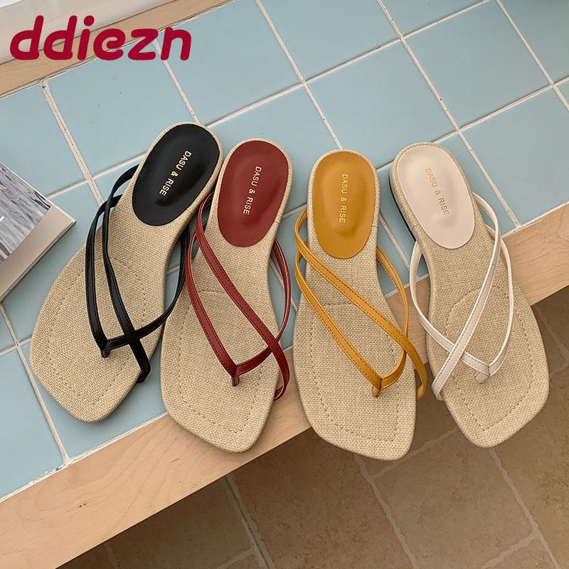 Fashion Footwear Slides Women Flats Slippers Shoes Summer Beach Female Flip Flops Fashion Square Toe Ladies Flats Slippers Sandals Shoes