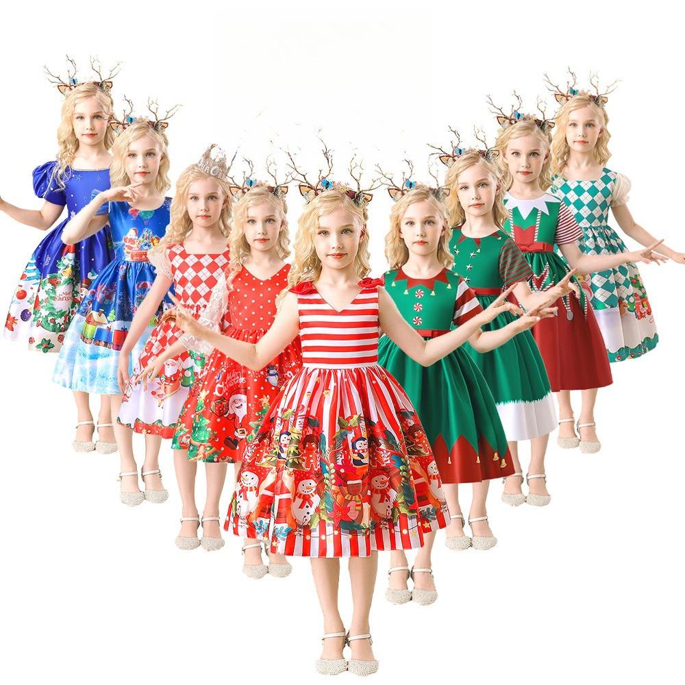 Kids Girls Santa Claus Xmas Snowman Princess Dress Children Christmas New Year Cosplay Costumes Kindergarten Performance Role Play Outfit