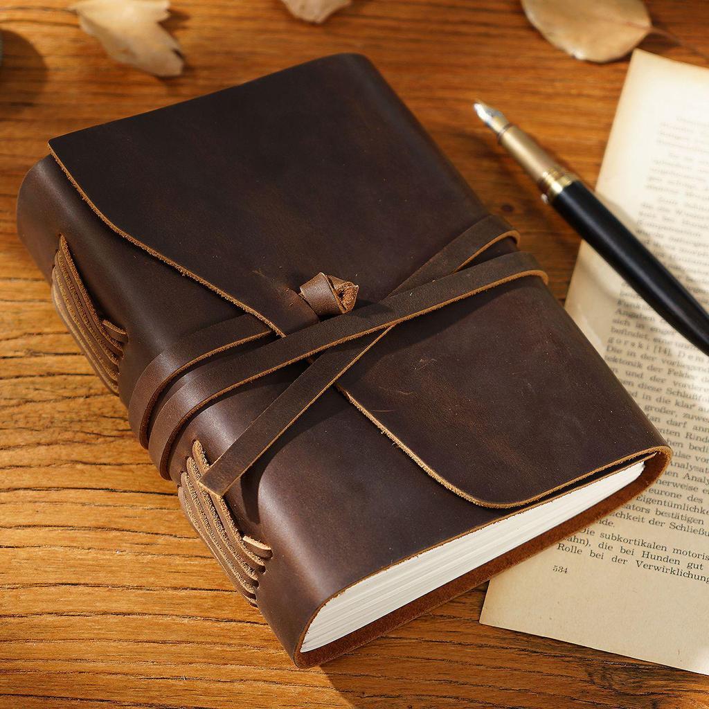 Vintage Crazy Horse Leather Journal: Retro Style Cowhide Loose-Leaf Notebook and Planner.