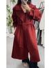 Women's Extra Long Double-Faced Wool Coat with Suit Collar - Elegant and Versatile Design