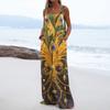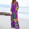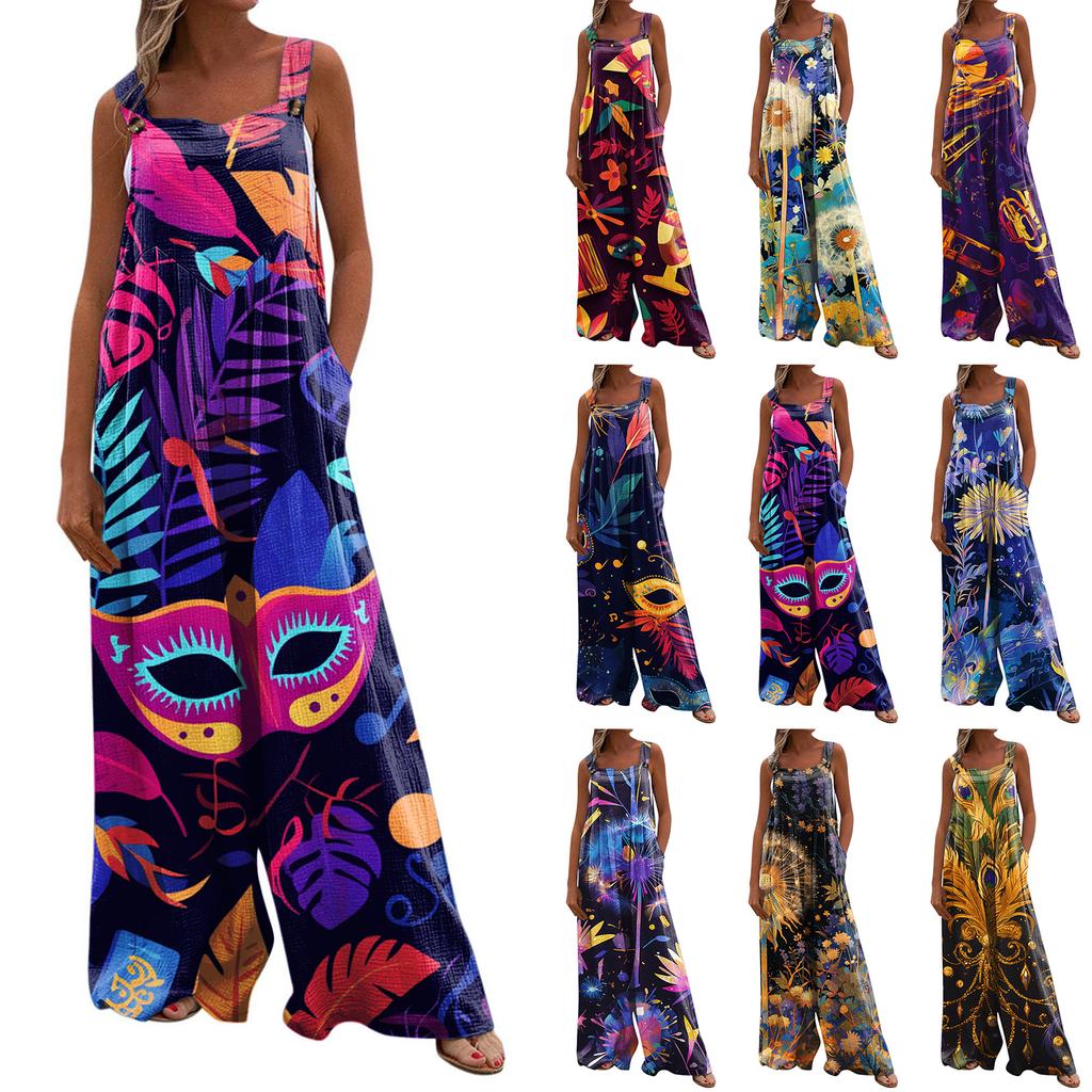 Wide Leg Overalls For Women Casual Loose Sleeveless Print Button Long Pant Romper Jumpsuit With Pockets