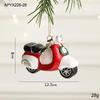 Red & White Painted Wooden House Christmas Ornaments: Car, Gift Cane, Donut, & Cloth Pendants