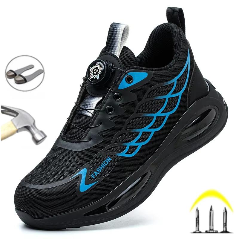 New Rotating Button Labor Protection Shoes For Men Anti Smashing Anti Piercing Lightweight Summer Odor Proof Safety Male Boots
