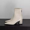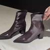 Elegant High Heels Ankle Boots For Women'S Pointed Toe Chunky Shoes Fashion Boots Pumps New Leather Winter Mujer De Botas