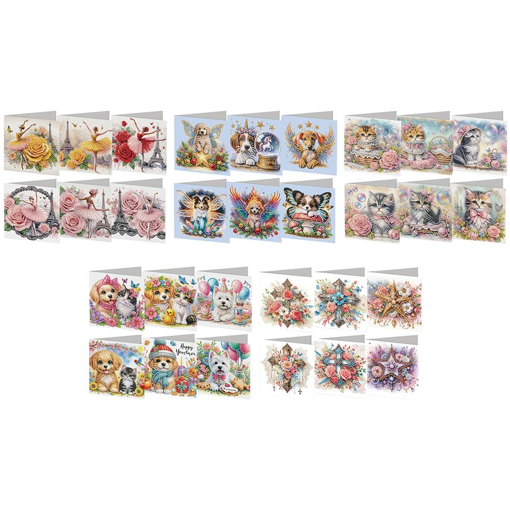 6Pcs DIY Diamond Art Greeting Cards Diamond Art Handmade Cards for Festivals and Celebrations