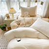 INS Seersucker Stripes Duvet Cover Pillowcases Flat Sheet Girls Bedding Set Washed Cotton Solid Color Bed Linen Single Size
