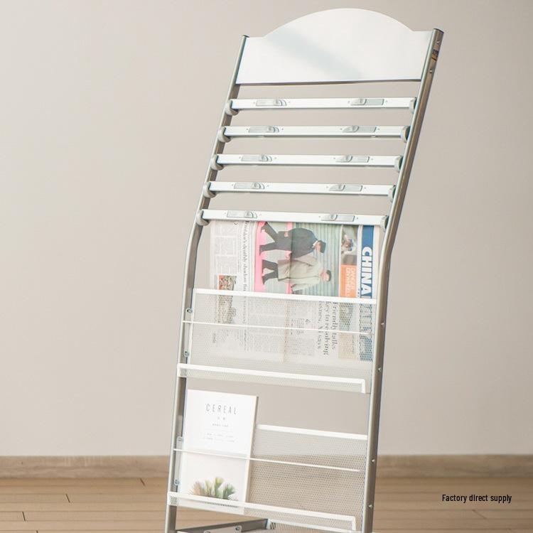 Floor-Standing Magazine, Newspaper, and Book Display Rack for Promotional Material and Office Storage