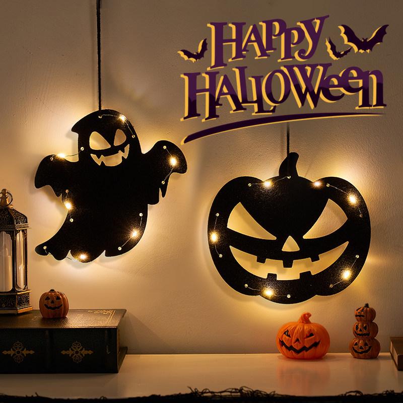 Halloween Hanging Pumpkin Lanterns with String Lights - Festive Scene Décor & Luminous Props