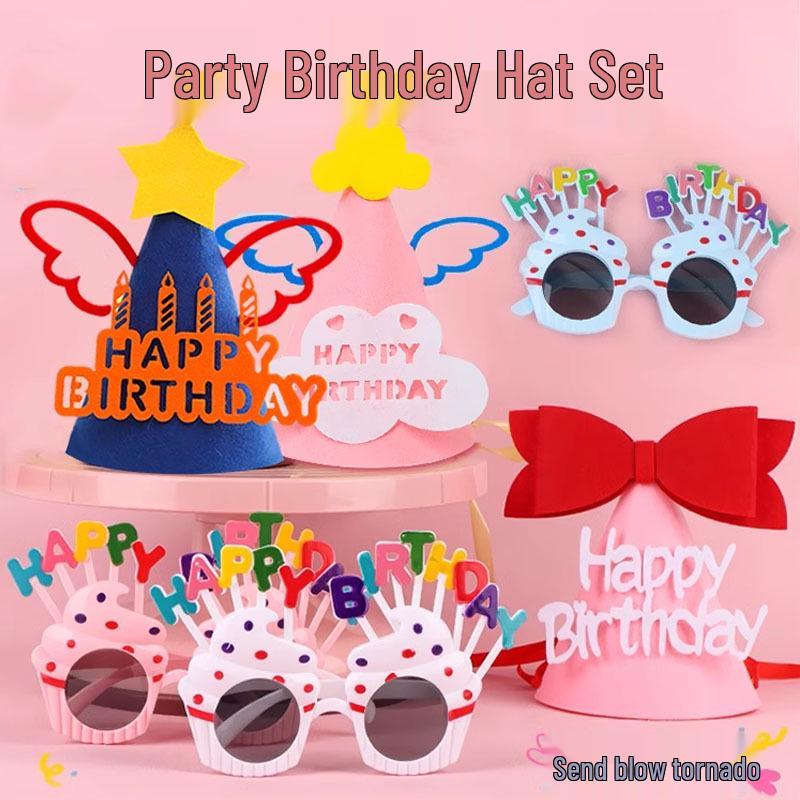 First Birthday Party Glasses & Hats Set for Boys and Girls - Cake & Photo Props