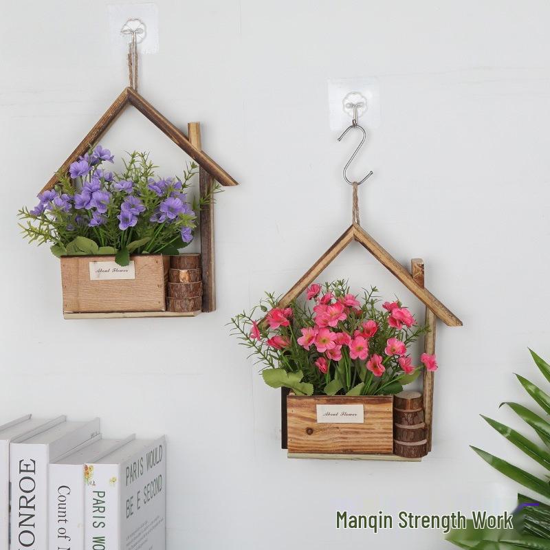 European-style Wooden Wall Hanging Flower Basket with Macrame