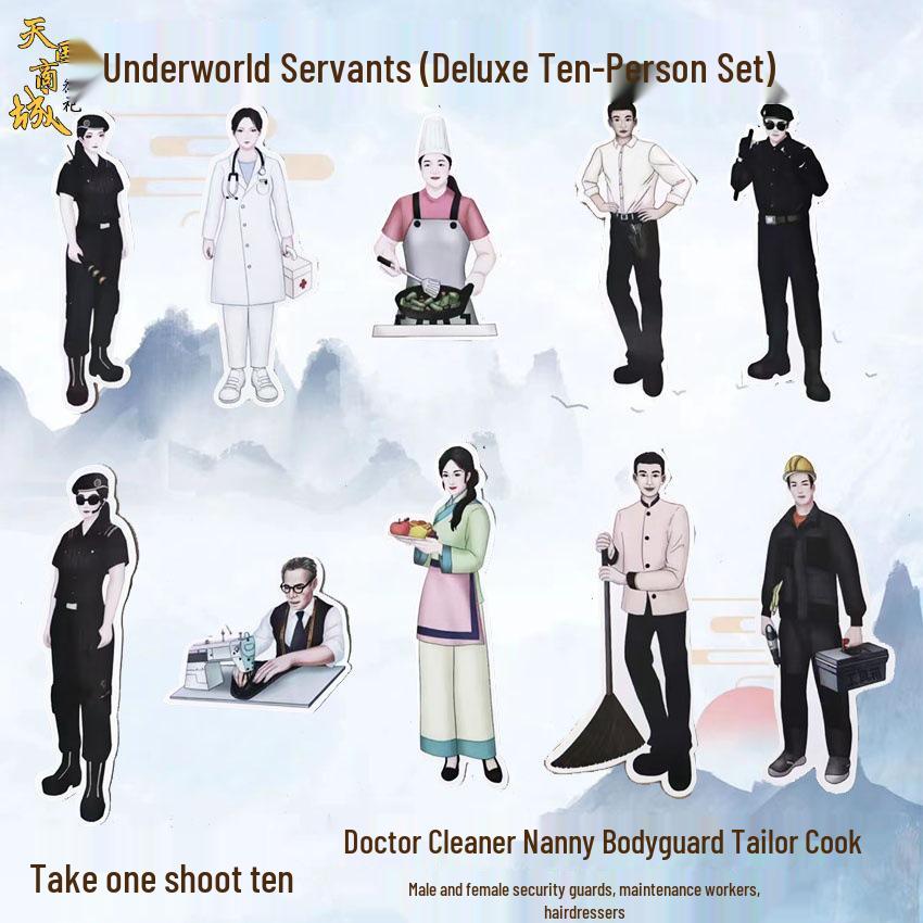 Luxury Joss Paper Sacrificial Supplies: Ten-Person Group of Nanny, Doctor, Bodyguard, Chef, Tailor, Repairman, and Security Guard.