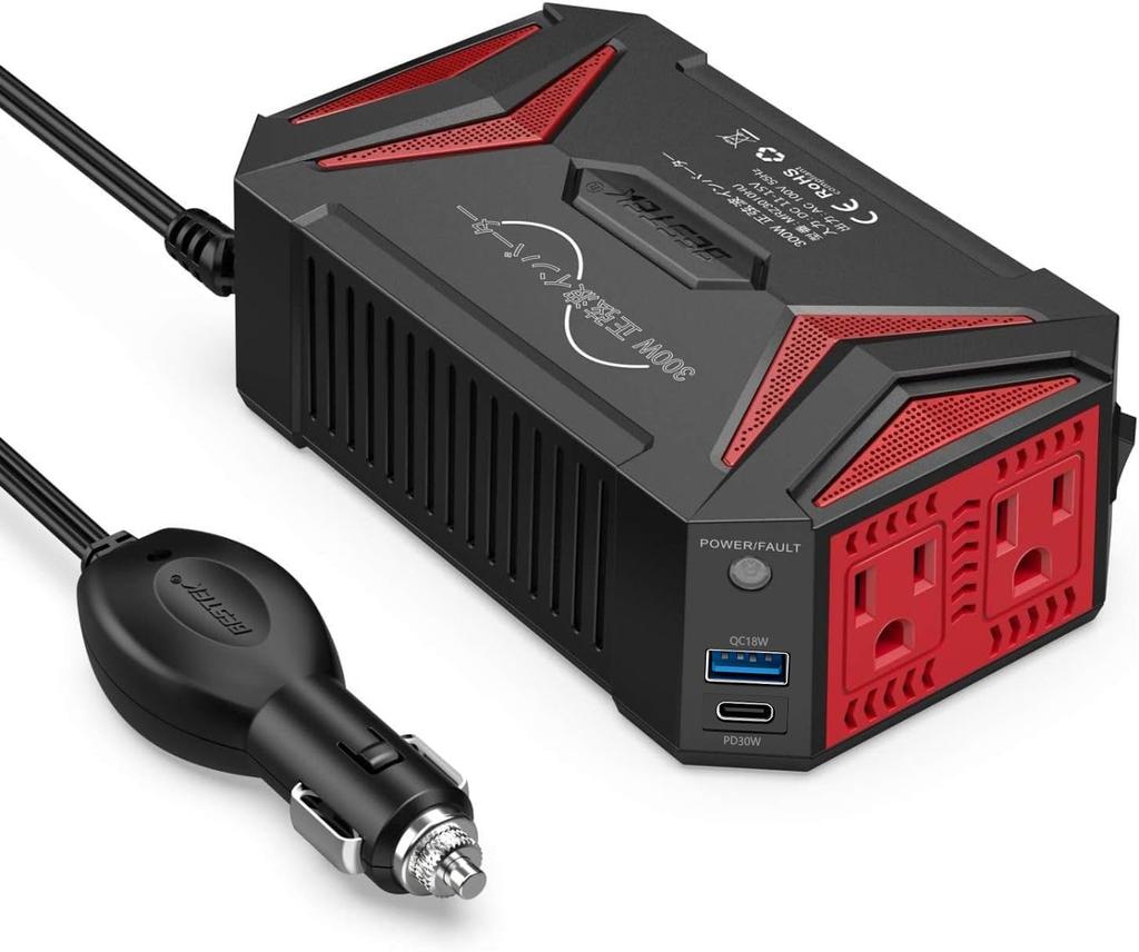 BESTEK MRZ3010HU-PD Sine Wave Inverter, Cigarette Lighter Socket, Outlet 300W, Converts DC To