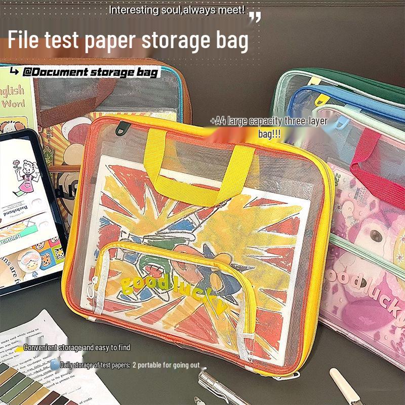 Large Capacity L-Shaped Mesh Bag for Exam Papers