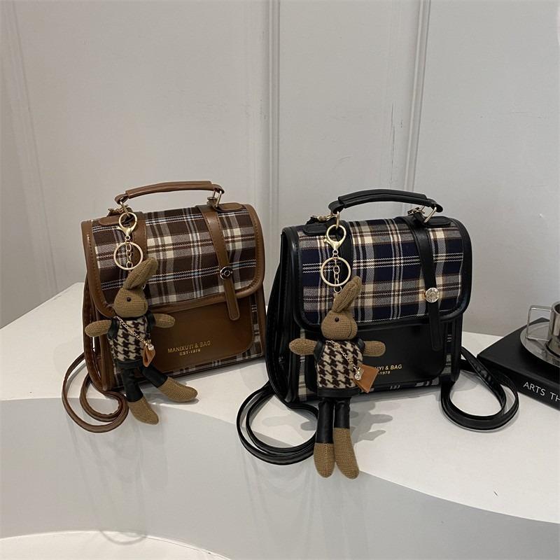 Retro Contrasting Color Fashion Student Bag New Trend Casual Backpack Grid Bag Versatile Women's Bag