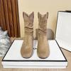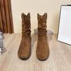 Experience timeless elegance and modern comfort with these Korean-style women's ankle boots. Crafted from soft suede, these boots feature a pleated design that adds a touch of vintage charm. The round toe and flat heel ensure all-day comfort, while the leather insole offers a luxurious feel underfoot. A durable rubber sole provides excellent traction and stability, making these boots perfect for versatile everyday wear. Ideal for women seeking a blend of retro style and contemporary functionality.
