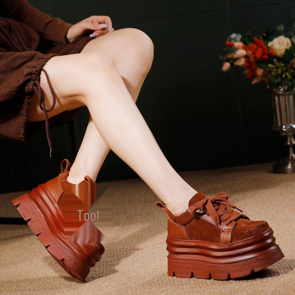 Step into style and comfort with these women's cowhide platform casual shoes. Designed for the autumn and winter seasons, these shoes feature a durable rubber sole that provides excellent traction and support. The lacing closure ensures a secure and adjustable fit, making these shoes perfect for everyday wear. Whether you're running errands or meeting friends, these chic and versatile shoes will keep you looking fashionable and feeling confident.
