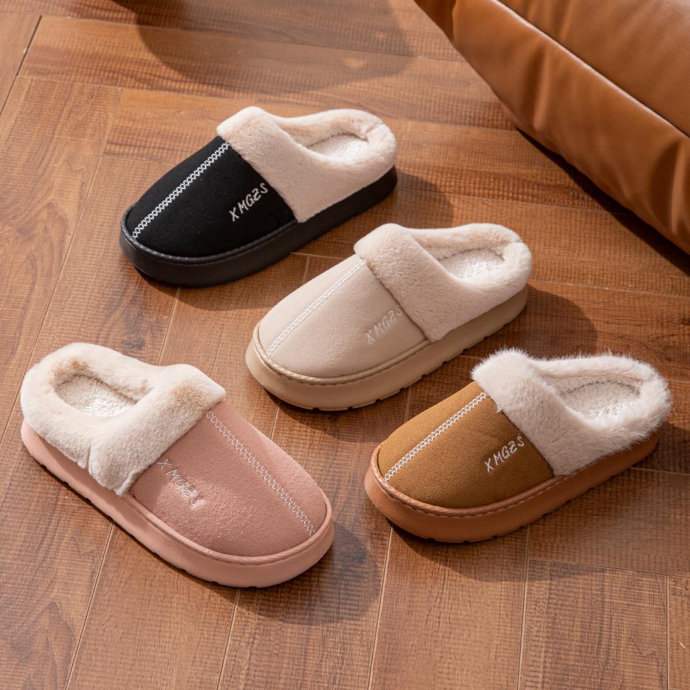 Women's and Men's Cozy Suede Plush Slippers - Non-slip, Thick Bottom, Silent, Outdoor Wear