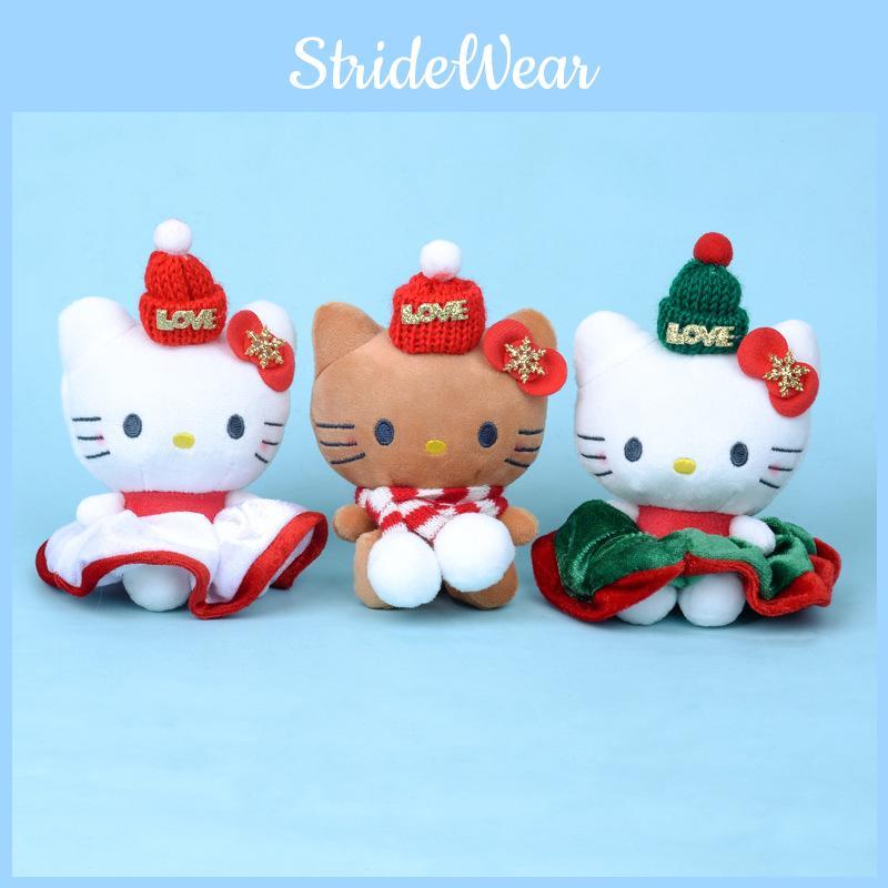Christmas plush keychain, cute cat plush toy, kawaii animal pendant, holiday gift accessories, cartoon cat keyring, soft plush keychain, adorable Halloween decor, plush cat bag charm