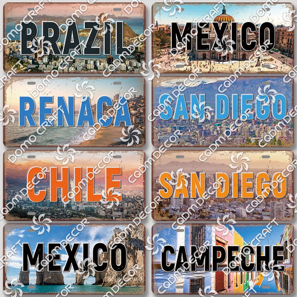 Retro National City Plaques Metal Plate Chile Brazil Mexico Metal Tin Signs Garage Car Club Living Room Home Wall Decor