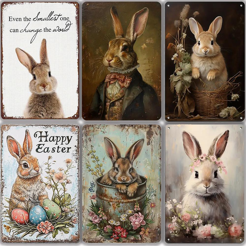 Charming Easter Bunny Metal Sign Perfect Gift for Family & Friends Cute Rabbit Wall Art for Home, Bar, Cafe Decor Garage Kitchen
