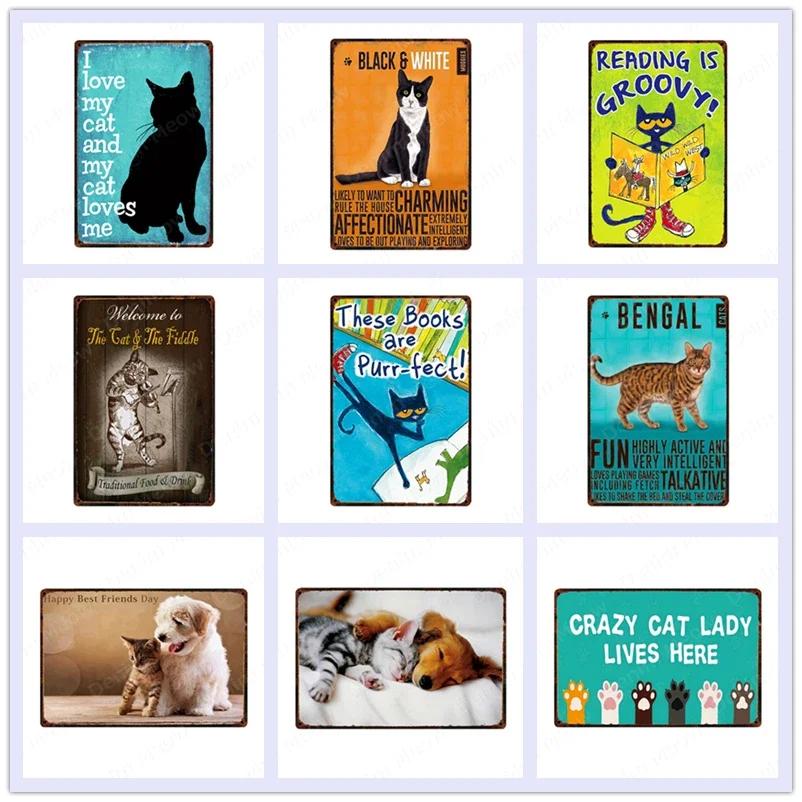 Crazy Cat Lady Lives Here Retro Plaque Black Cat Metal Tin Signs Bar Cafe Home Wall Decor Bengal Vintage Metal Art Poster N359