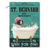 Metal Tin Sign Wall Decor St. Bernard Dog Bubble Bath Record Coffee Hanging Plaque Aluminum Signage Posters 8x12 Inch