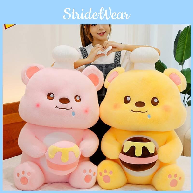 Chef Honey Bear Plush toy, a delightful addition to any child's playtime or cozy companion for anyone seeking comfort, this charming oversized stuffed bear comes in charming pink and cheerful yellow and is crafted from super soft short velvet material to make it irresistible to hug and the perfect hug whether you are looking to brighten up a room or looking for the perfect gift