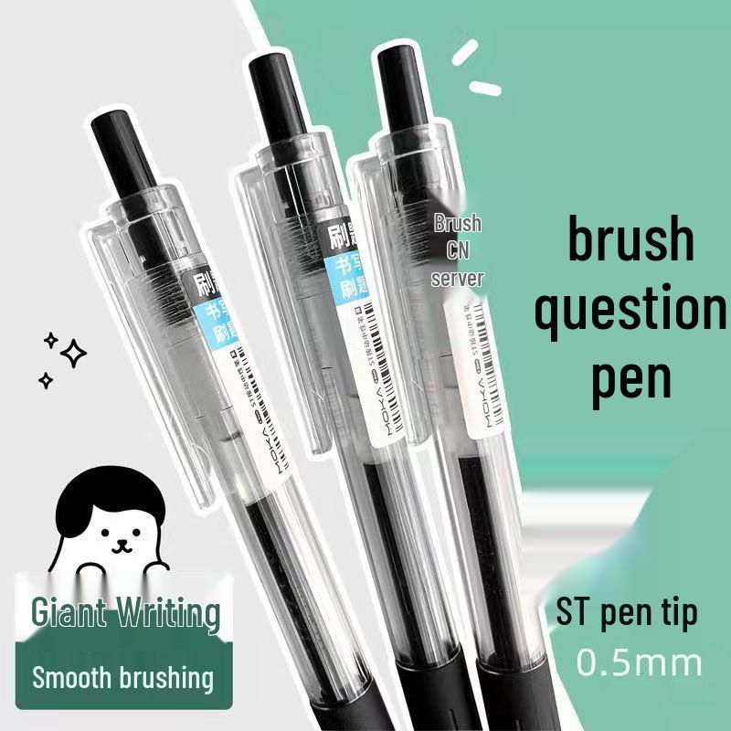 ST Nib Push-Action Gel Brush Pen, Black Refill - Smooth & Durable with Soft Silicone Grip, Ideal for Students.