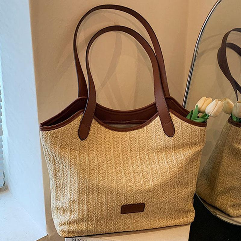 2025 New Summer Bag Large Capacity Seaside Vacation Leisure Straw Bag Niche Woven Shoulder Tote Bag