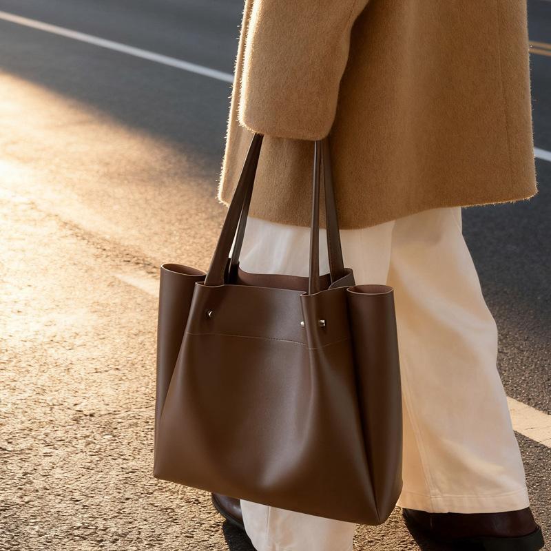 Solid Color Soft Leather Large-capacity Tote Bag Women's 2025 New Large-capacity Shoulder Bag Fashionable Versatile Commuter Handbag