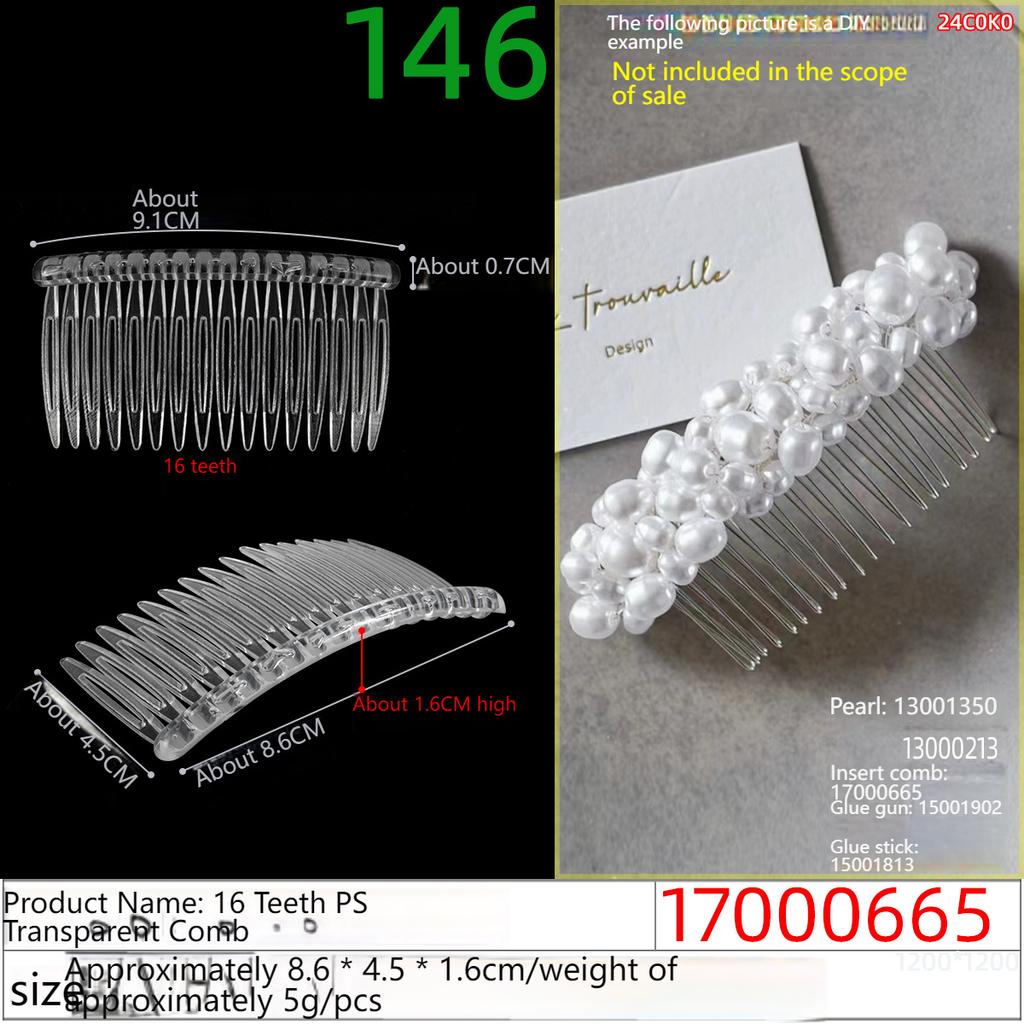 16-Tooth PS Material Transparent Comb Plastic Insert Comb Hair Styling Tool Korean Fashion Hair Comb DIY Super Tool