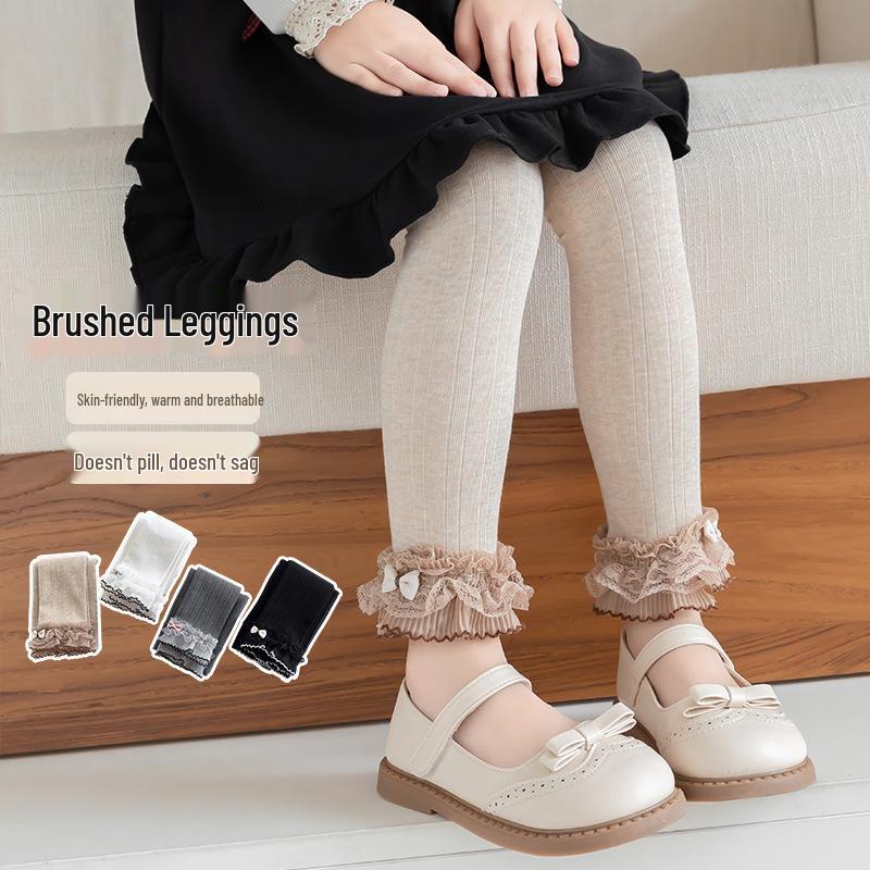 These leggings are designed to provide warmth and style during the cooler months. Crafted from soft brushed cotton, they feature a cozy fleece lining perfect for autumn and winter. The nine-point length offers a modern fit, while decorative bow and lace trims add a touch of elegance. Ideal for pairing with tunics or dresses, these leggings are a versatile addition to any girl's wardrobe.