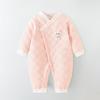 Discover the perfect cozy outfit for your little one with this warm cotton onesie, designed especially for autumn and winter. Crafted from soft, high-quality cotton, it ensures maximum comfort and warmth for your baby. The long sleeves offer extra coverage, keeping your baby snug during chilly days. With its charming quilted design, this romper not only provides comfort but also appeals with its stylish look, making it an ideal choice for both everyday wear and special outings.