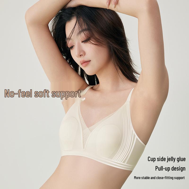 Brand Seamless Ultra-Thin Satin Bra for Women: Minimizing Big Chest, Anti-Sagging, with Gathered Rabbit Ear Cup.