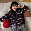 Contrast Color Striped POlO Shirt Autumn and Winter New Loose Lazy Style Soft Waxy Knitted Sweater Top Lapel Sweater