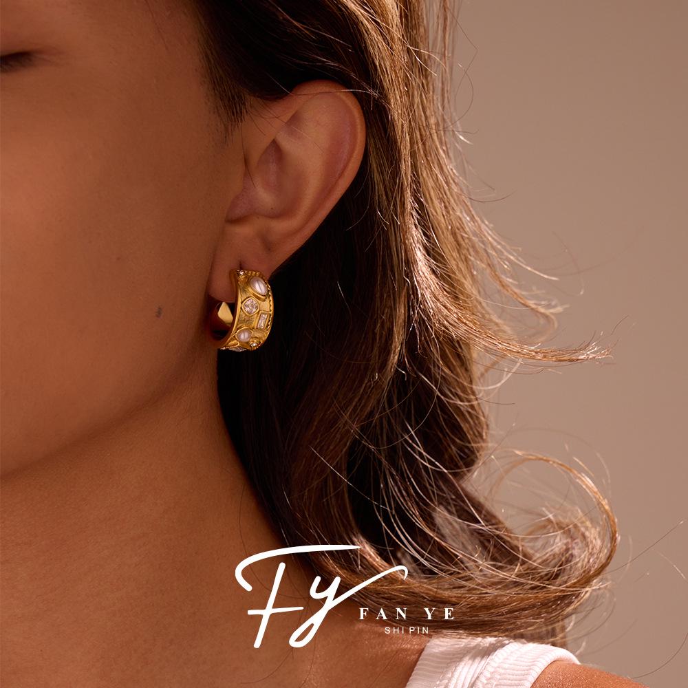 European & American Fashion C-Shaped Diamond Geometric Stainless Steel Earrings: Light Luxury, High-End Temperament