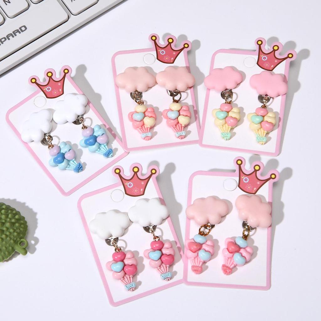 Cute Cloud Balloon Earrings for Girls - No Piercing Princess Style Dangle Clips