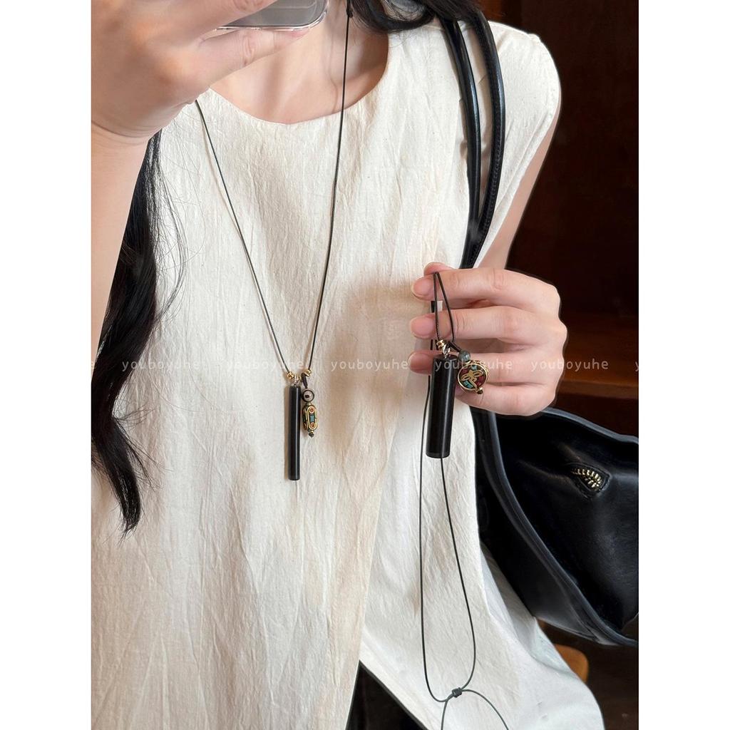 Nepalese Ethnic Sandalwood Pendant Necklace - Women's Versatile Sweater Chain Accessory