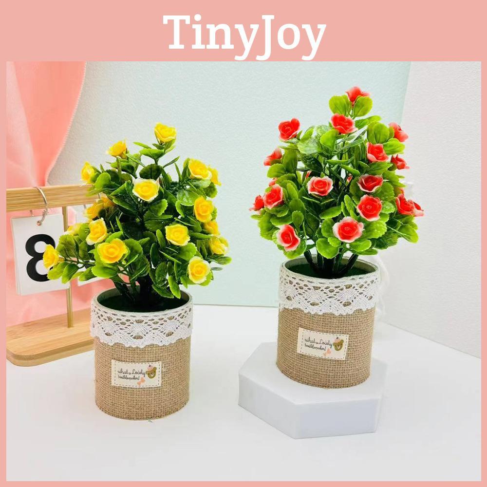 This decorative flower pot features a 25-branch hibiscus-inspired design crafted from durable silk fabric and plastic materials. It measures 9.1 inches high and 4.7 inches wide, providing a vibrant addition to any space. Its realistic appearance makes it ideal for home or balcony decor, bringing natural beauty indoors. Easy to maintain, simply wipe clean with a damp cloth for lasting freshness.