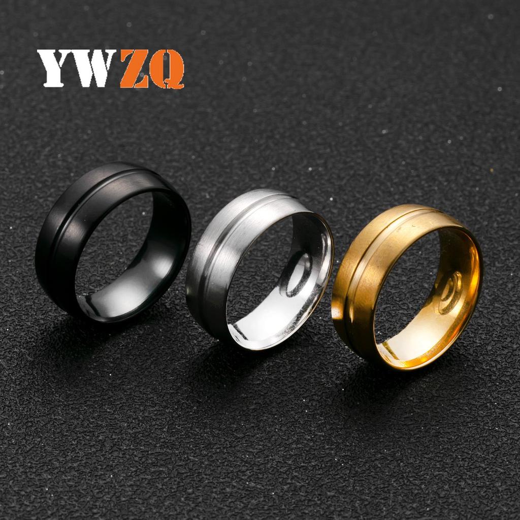 Men's Titanium Steel 8mm Frosted Groove Ring - Minimalist Fashion Jewelry