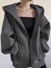 Solid Color Women's Hooded Fleece-Lined Cardigan Jacket - American Retro Lazy Style for 2025 Autumn/Winter