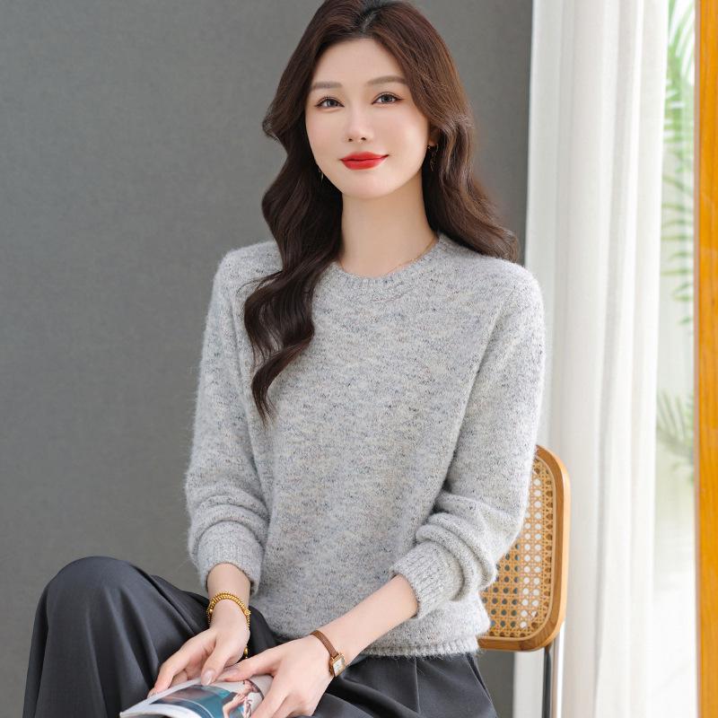 Women's Solid Color Wool Sweater - Autumn/Winter 2025, Round Neck Knitted Top