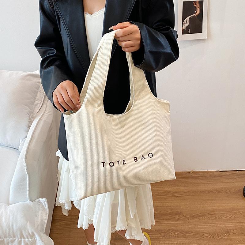 Casual Large-capacity Handbag Bag Women's 2025 New Embroidered Letter Tote Bag Corduroy Simple Underarm Bag