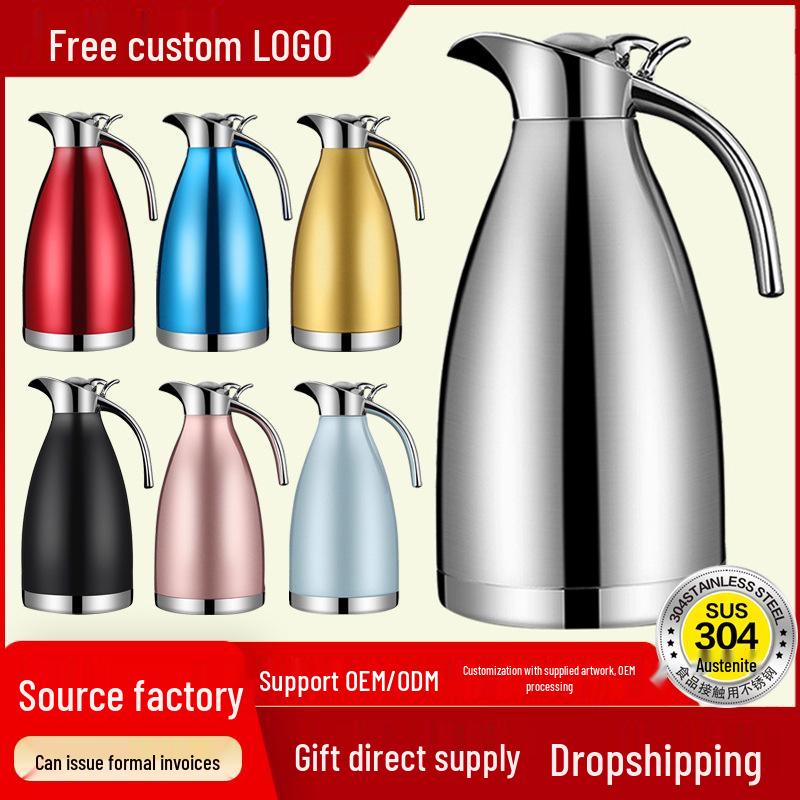 2L European-Style Insulated Vacuum Coffee Pot, 304 Stainless Steel - Keeps Drinks Hot or Cold