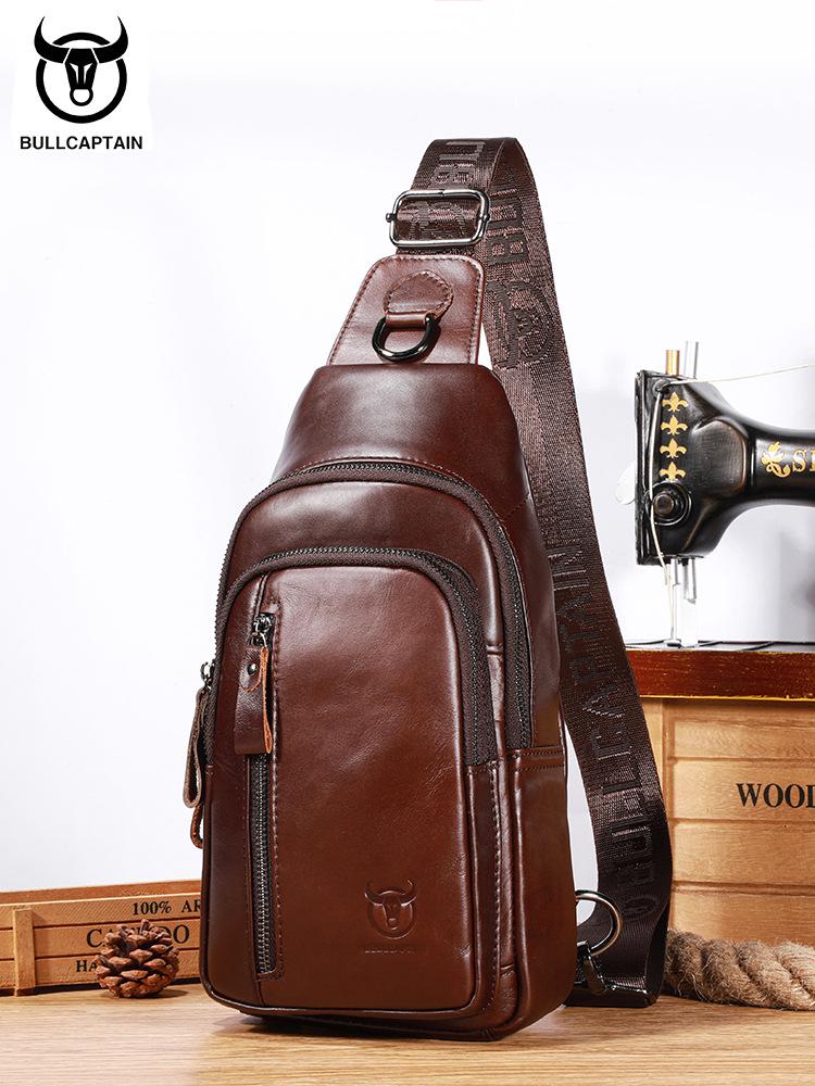 Cow Captain Men's Genuine Leather Crossbody Chest Bag - Top Layer Cowhide Multifunctional Sports Casual Bag