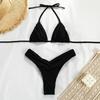 Introducing a stylish and contemporary bikini set designed exclusively for women. This elegant set features a solid pattern and is crafted from high-quality nylon, ensuring a comfortable fit and durability. With its new range of vibrant colors, it caters to both European and American style preferences. The ruched detailing adds a touch of sophistication, making it a perfect choice for beach outings or poolside relaxation. Experience the perfect blend of fashion and function with this must-have addition to your swimwear collection.