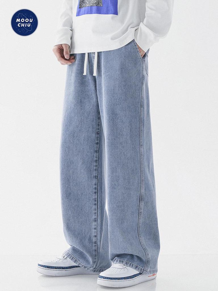 Muxiu Men's Autumn/Winter Loose Straight-Leg Elastic Waist Jeans