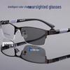 High-End Semi-Rimless Men's Photochromic Myopia Glasses - Anti-Blue Light, Prescription Compatible, Trendy Design