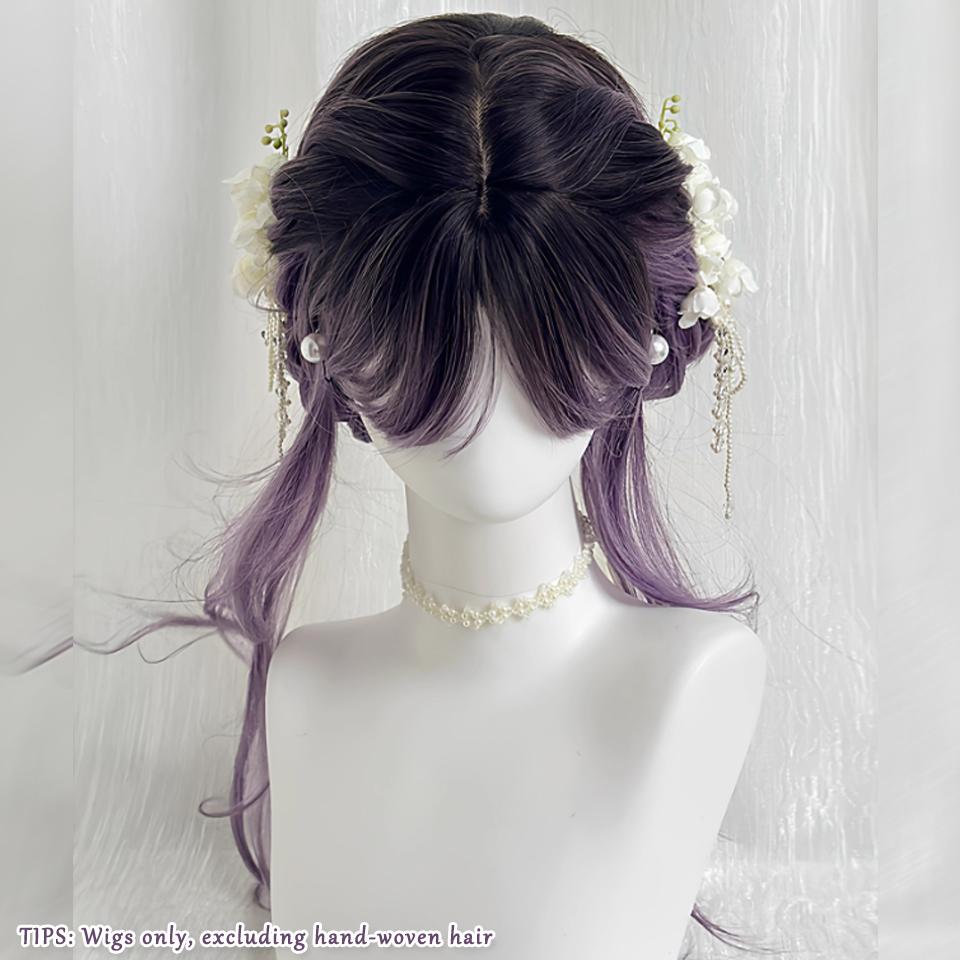 Purple Gradient Synthetic Lolita Wig Long Curly Hair with Bangs Is Suitable For Ladies To Wear In Daily Festivals
