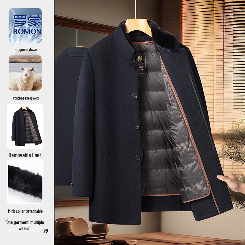 ROMON Men's Wool Blend Mid-Length Overcoat with Detachable Down Liner
